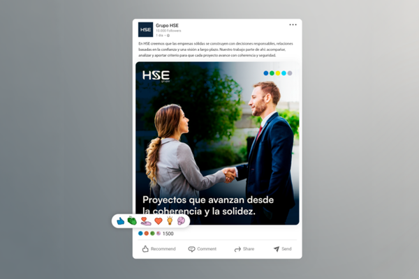La identidad de HSE se construye sobre tres conceptos clave: legado, solidez y humanidad. Que deben estar presentes en cualquier expresión visual o verbal de la marca.